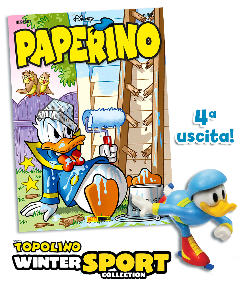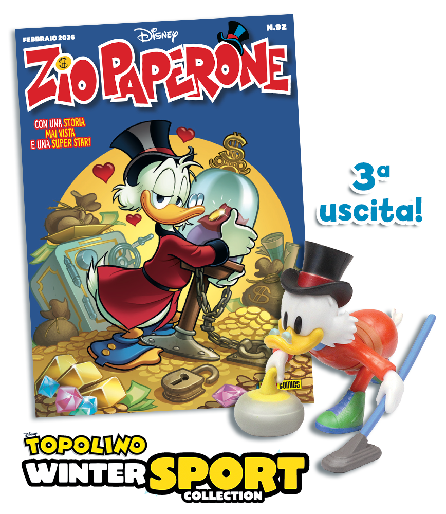 elegante, anche sugli sci, Qui, Quo e Qua sono perfetti per sfrecciare con il bob. Pippo è un campione alle prese con l’hockey su ghiaccio, Paperino può essere fulmineo nel pattinaggio di velocità, mentre Zio Paperone si dedica con impegno al curling.