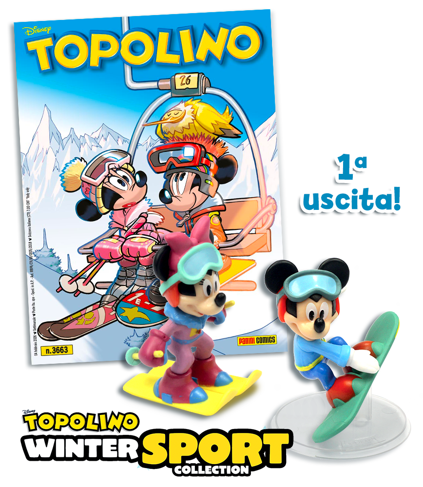 La Topolino Winter Sport Collection è la nuova collezione di statuine 3D dedicata ai nostri amici topi e paperi mentre si cimentano nei più seguiti sport invernali. Topolino è pronto per affrontare le piste